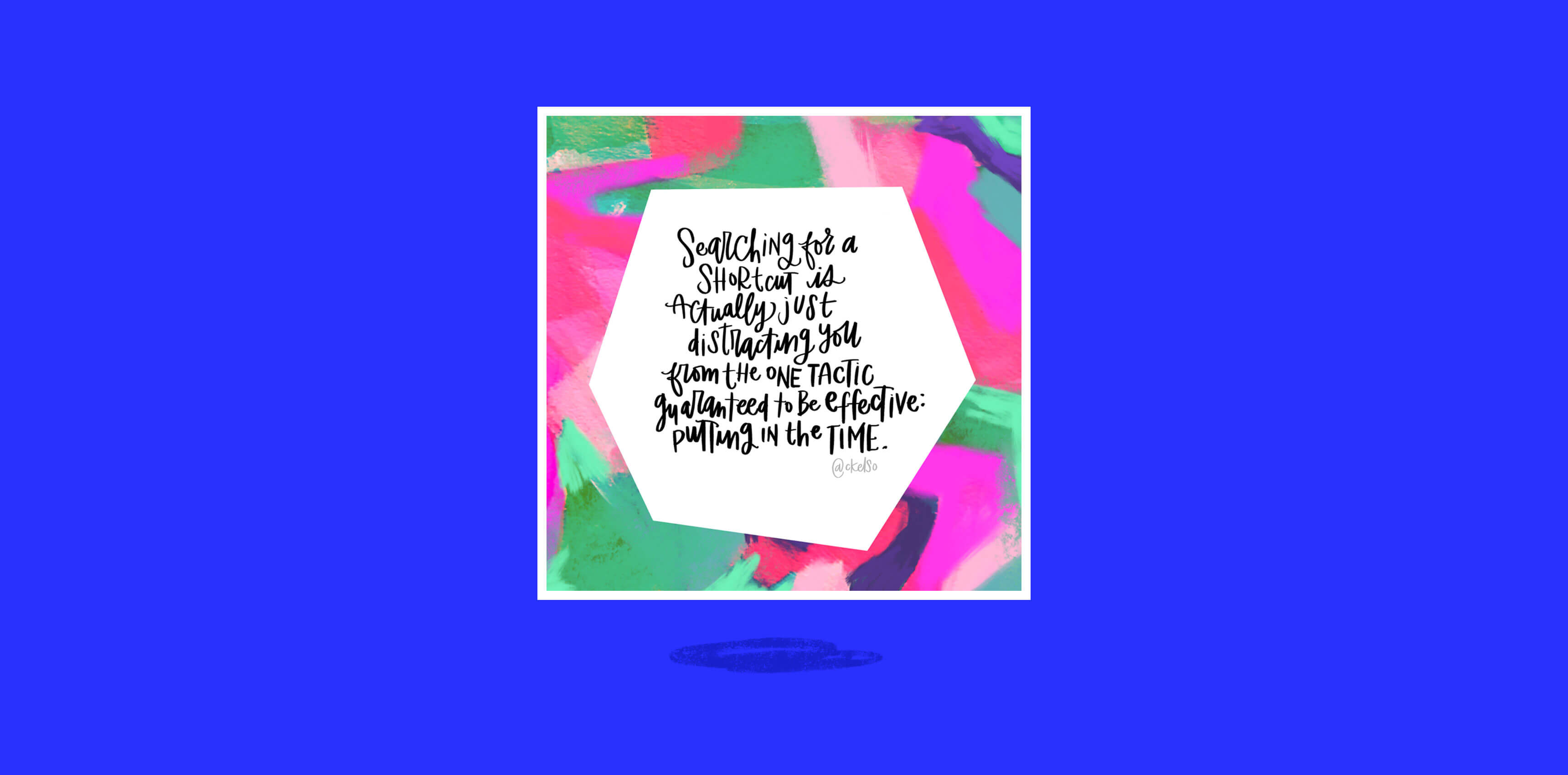 Searching for a shortcut is actually just distracting you from the one tactic guaranteed to be effective: putting in the TIME. “Searching for a shortcut is actually just distracting you from the one tactic guaranteed to be effective: putting in the TIME.”