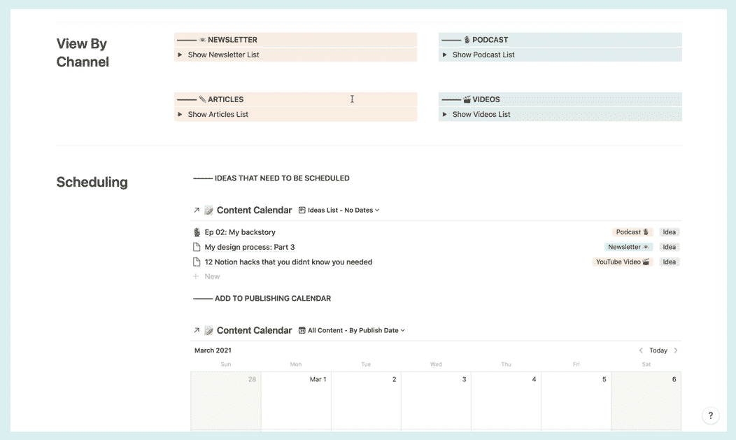 This is crucial because even if you spend all the time setting everything up in Notion, if you don’t come back to it often and don’t give yourself set times to invigorate and maintain the system, it will not work.