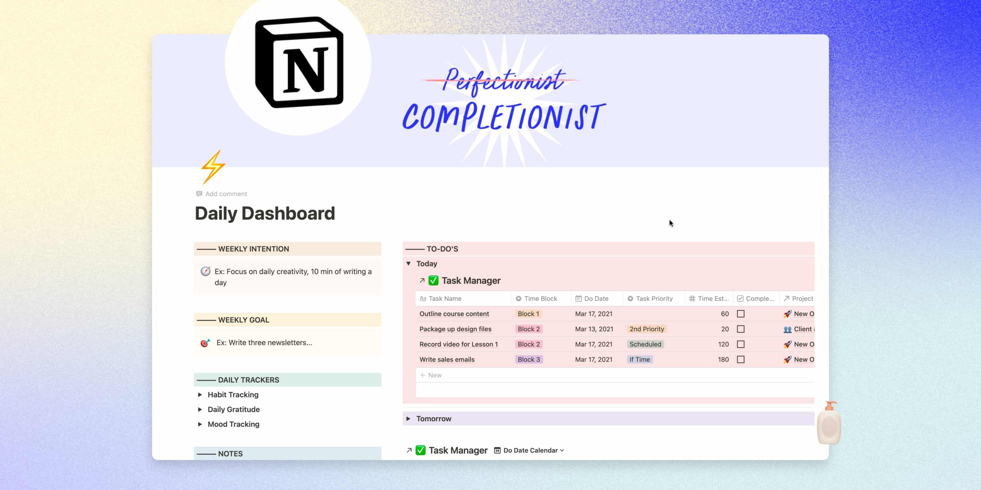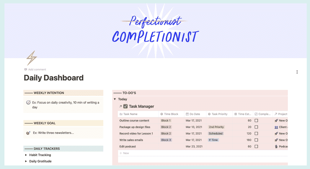 This is where we do our Daily Tracking, where we take action on our Tasks, track our time and GET. THINGS. DONE 🥳