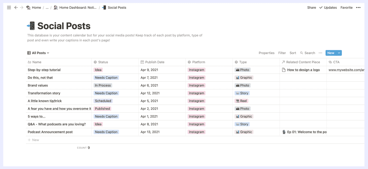 The best part of Notion is using all these blocks together to build whatever dashboards and pages are most helpful to keep your life and business organized. Truly, the possibilities are endless and that’s what makes Notion powerful!