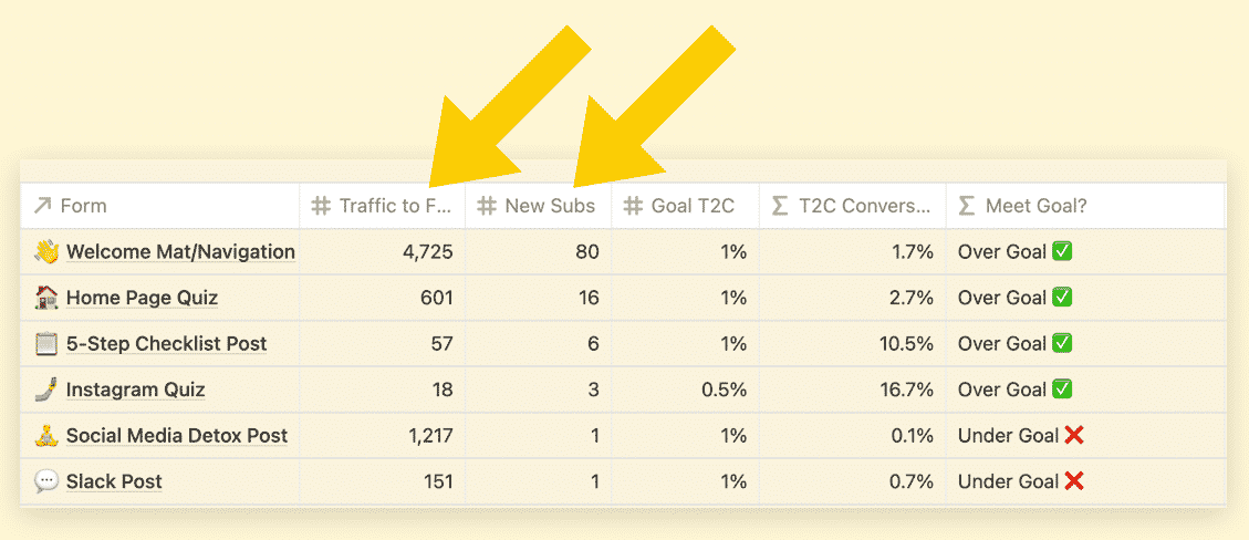 During that Weekly Review, we’re also logging any stats we want to track for our conversions, etc.